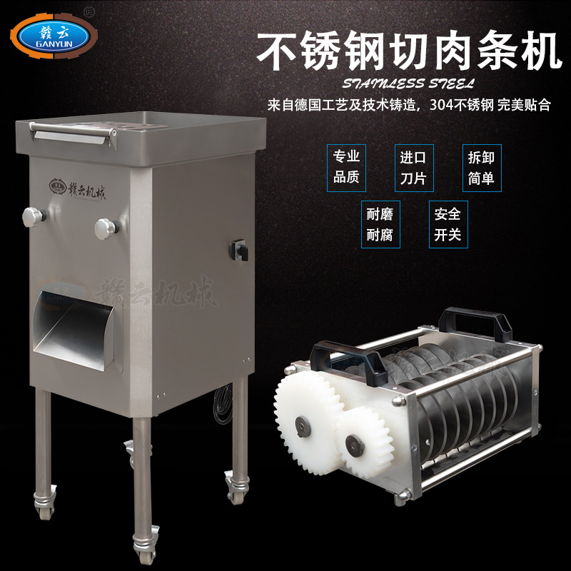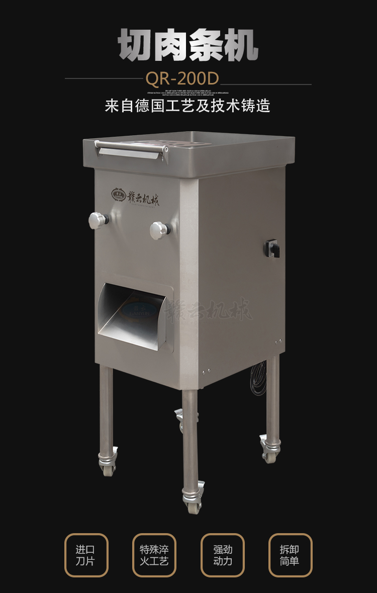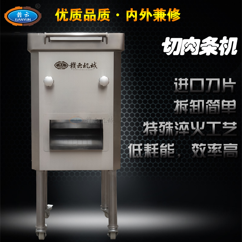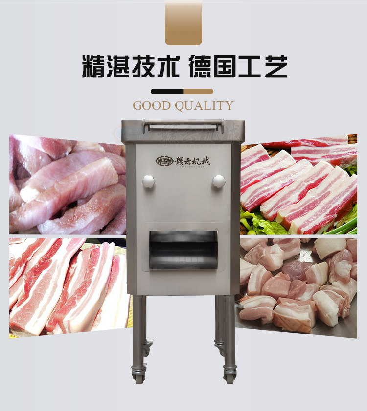 功能:該機(jī)械可用于多種肉類切條、切塊,新鮮的五花肉先開(kāi)條再切塊。可定制切肉片的刀組3MM-5MM.