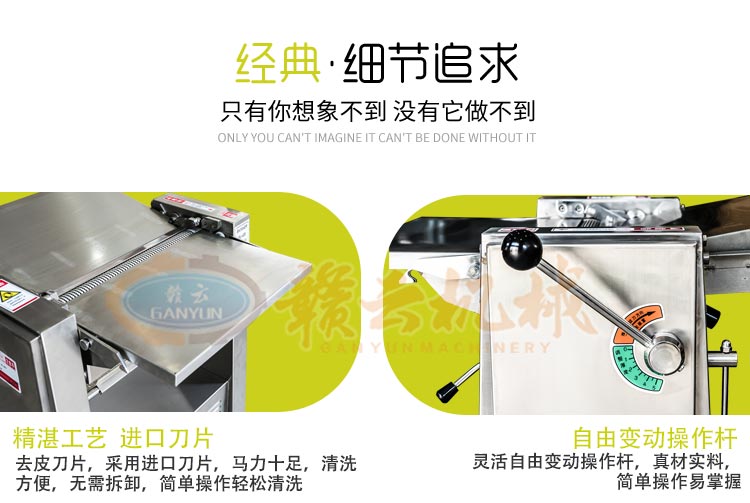2.自由變動操作感厚度調(diào)節(jié)裝置,根據(jù)客戶需求,隨意調(diào)節(jié)去皮厚度。