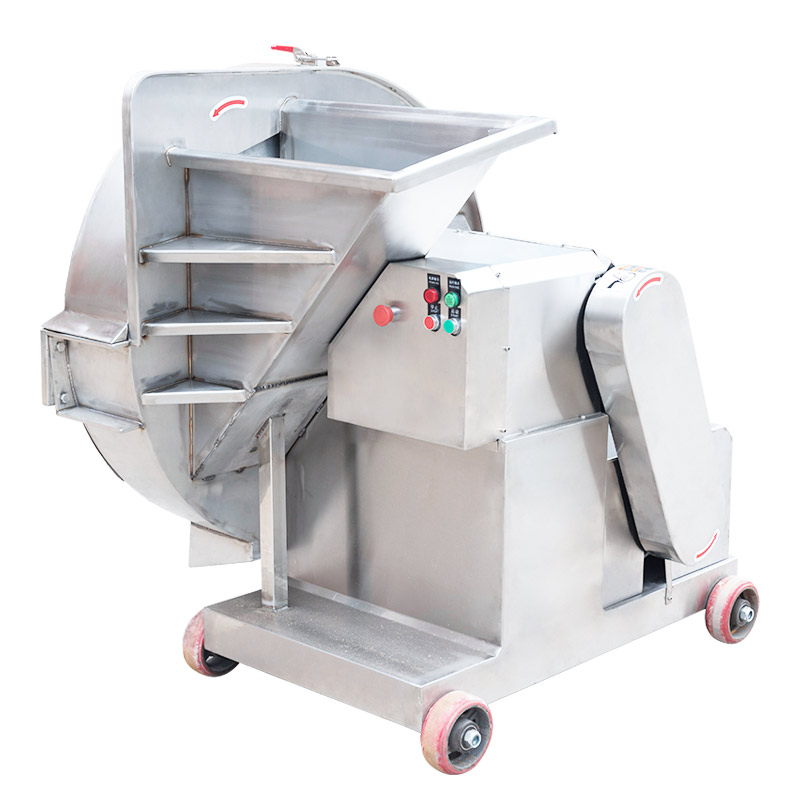 工作原理:機器利用斬刀高速旋轉,將凍肉切成不同厚度的肉片,凍肉在不解凍的提前下切成肉片,可省去凍肉解凍過程,提高工作效率。凍肉刨肉機用于針對冷凍豬肉、魚肉、雞胸肉板等冷凍成品肉的快速刨碎待絞肉機加工使用的機器,可刨-182C以下狀凍肉,無需解凍,減少肉的營養成分和蛋白的損失在肉食加工中是不可缺少的設備。