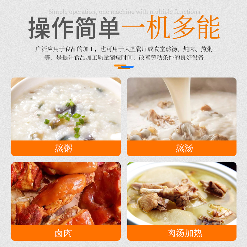 鍋體參數(shù):采用足厚4mm一體成型鍋底,無衛(wèi)生死角,不易粘鍋。鍋身足厚2m。 容量400L。 功能介紹: 9檔火力