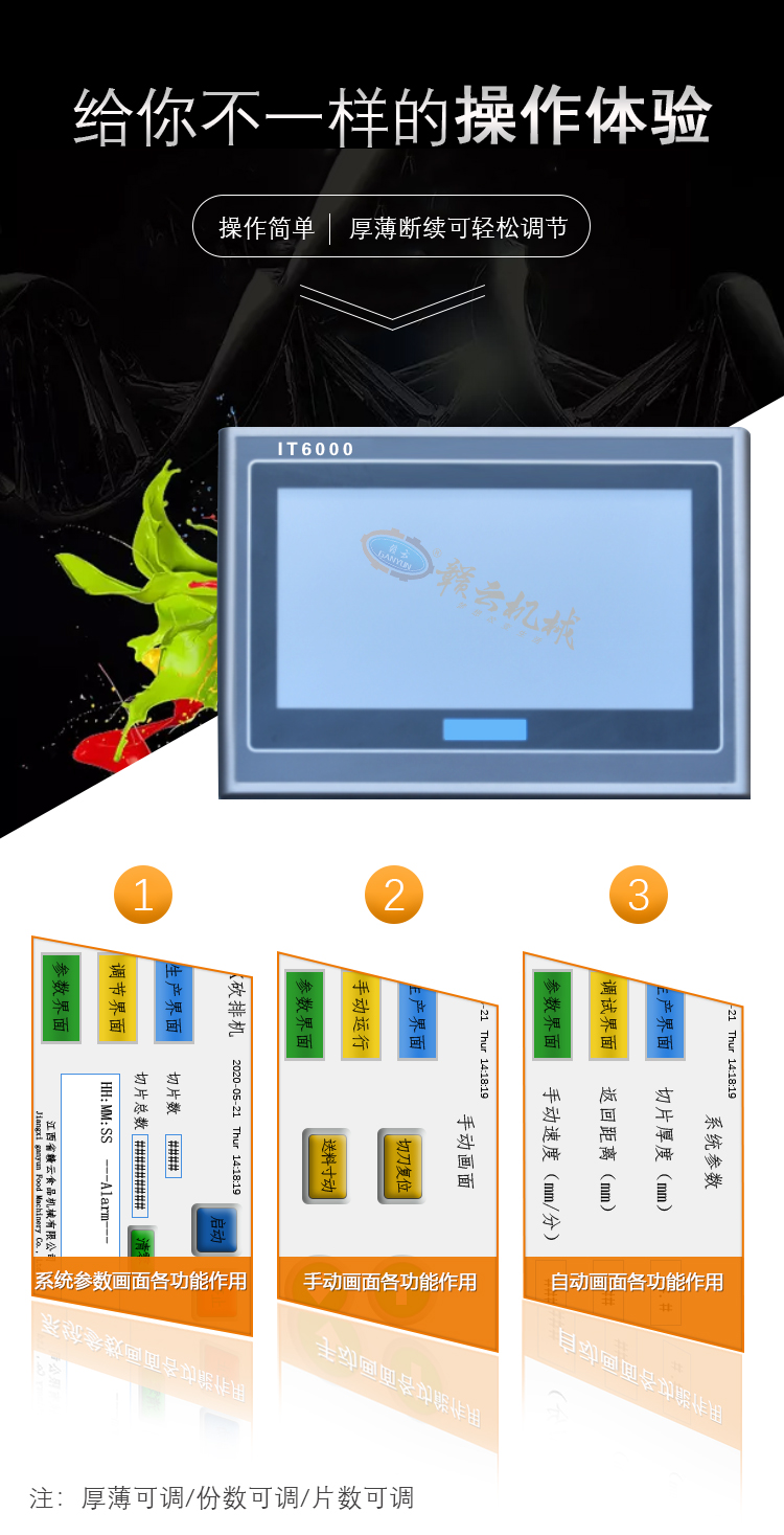 (3)可依不同物料需求切制不同規格,通過調整控制面板上的按鈕設定所需規格來實現。