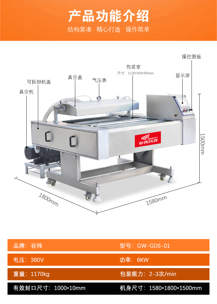 6.功能:連續滾動式真空包裝機是我公司新研制的一款節能型真空包裝機。該機采用凸輪分度器傳動,以凸輪分度器代替了傳統的電機,設備操作人員無須手動調整傳送帶位置,更省時省力;這種傳動方式是傳統的連桿傳動方式不可比的。氣動連續滾動真空包裝機取代了電機,節省了電能,操作后臺不用進行特殊保護,不用擔心電機被燒毀,無污染,綠色環保更節能。整機可傾斜四種角度,可滿足各種包裝要求。