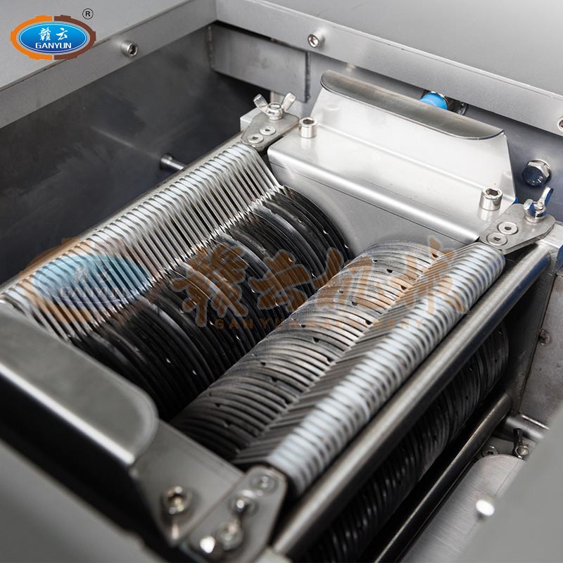 6.機(jī)器功能多,單個(gè)刀組可切肉片,雙刀組切肉絲,重復(fù)加工切割切成肉丁。可以通過(guò)跟換不同規(guī)格的刀具,切出不同尺寸規(guī)格的肉絲、肉片、肉丁。