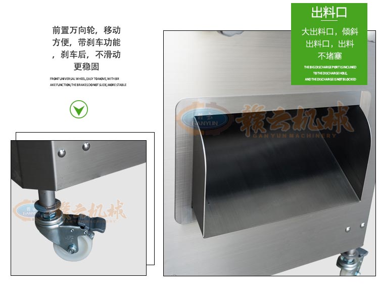 2.入料口可輕松拆卸,輕松切換,進(jìn)料口防護(hù)罩設(shè)有防止異物或手指伸入有效地保護(hù)安全。