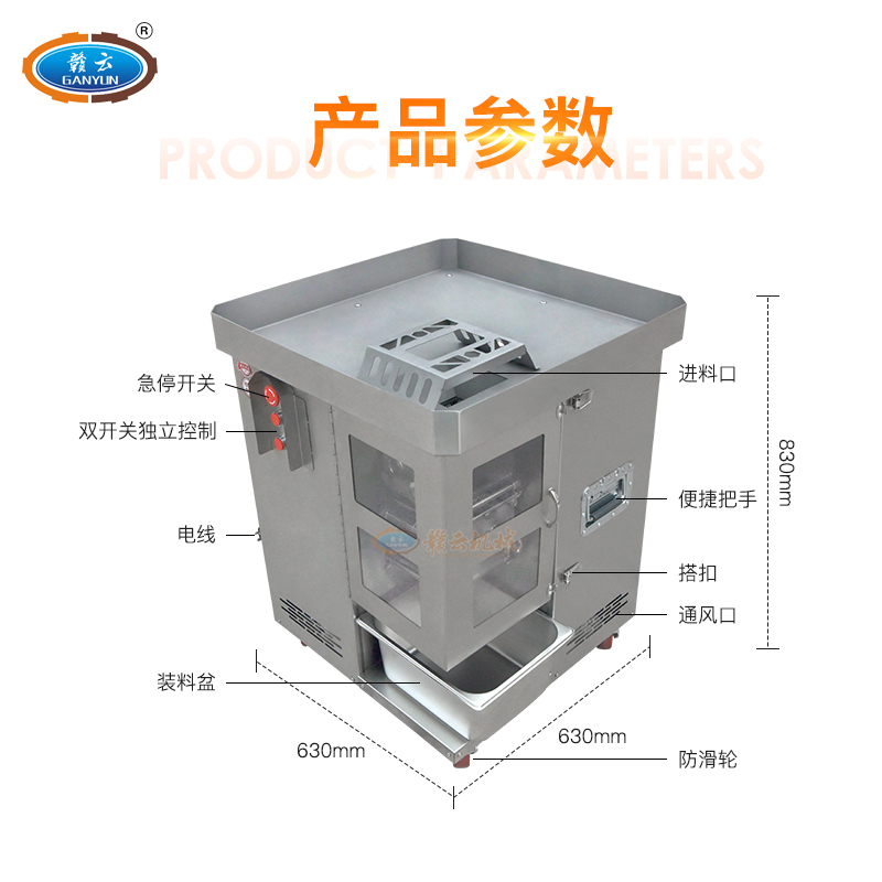 2.進料口設有防護罩設,防止異物或手指伸入能起到安全保護。
