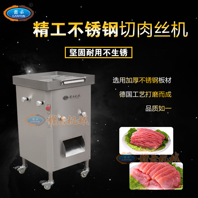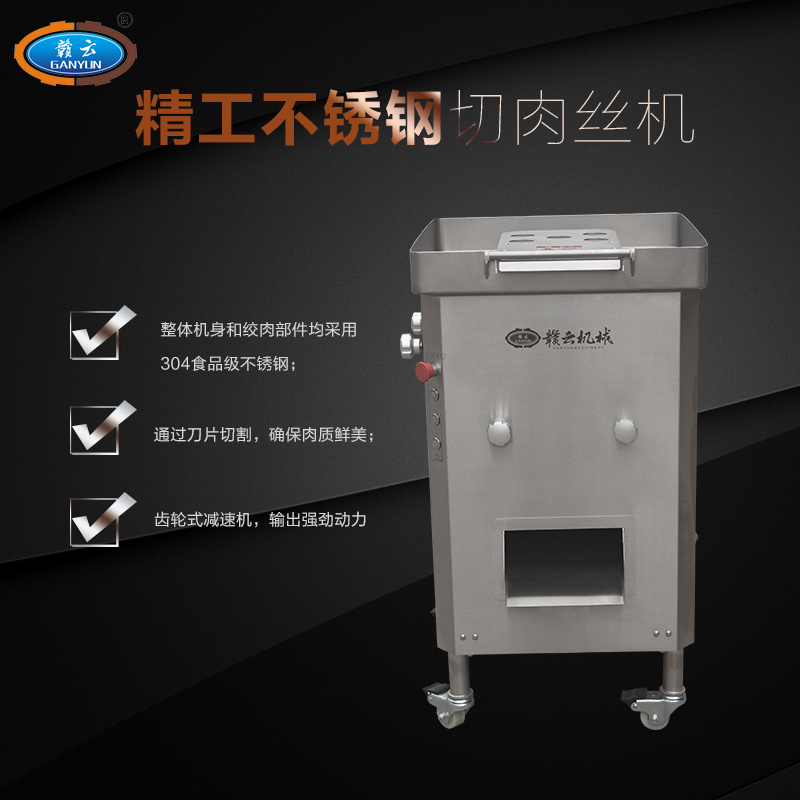 1.切片產量:800KG/H2.切絲產量:600kg/H2.重量: 88kg3.切肉厚度:4mm4.入料尺寸:320*120mm5.出料口寬度:370mm6.出口離地高度:230mm5.功能:該機械可用于多種肉類切片,齒輪傳動。單獨電控箱,可拆卸刀俎,方便清洗